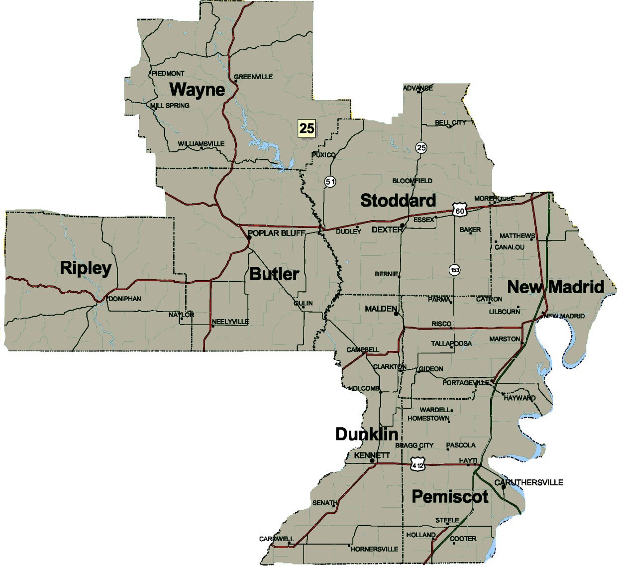 Counties Represented: Butler, Dunklin, New Madrid, Pemiscot, Ripley, Stoddard and Wayne Legislative Service: Elected to the Senate: 2004, 2008 House of Representatives: 2000 - 2004
