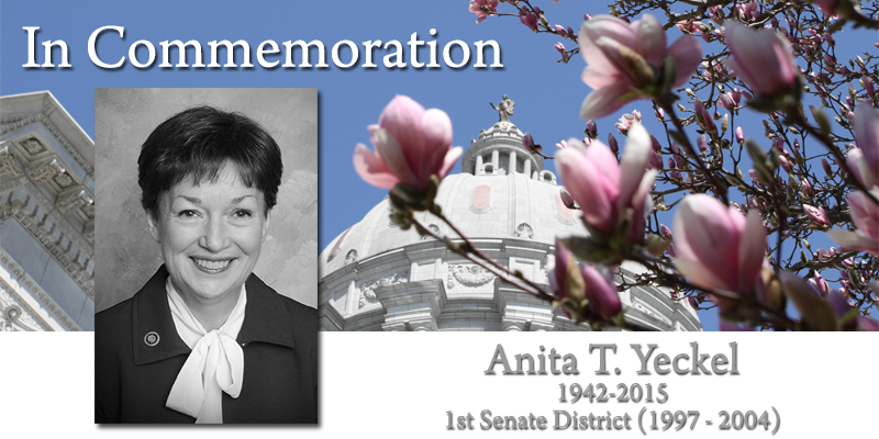 Anita T. Yeckel served the people of the 1st District, now the 15th District (part of St. Louis County). Born in Utah, she moved with her family to St. Louis when she was 6 years old. She graduated from the former Mercy High School and went on to receive a bachelor’s degree in political science and an MPPA from the University of Missouri-St. Louis. She worked in the banking industry for 17 years, including for the Yeckel family’s former American Home Savings and Loan. Senator Yeckel served three terms on the Lindbergh School District Board of Education, serving as president, treasurer and secretary. She received the St. Louis Business Journal Legislative Award, 2000 Voice of Missouri Award and UMSL’s Presidential Citation for Alumni Service. She was elected to the Senate in 1996 and re-elected in 2000. Senator Yeckel served as the assistant majority floor leader during the 92nd General Assembly, from 2003-2004. (Republican)