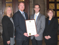 Barbara and Bob Bloch accept a Senate Resolution from Senator