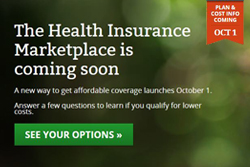 Visit HealthCare.gov to learn more about the Health Insurance Marketplace. Enrollment starts Oct. 1. Click on the "See Your Options" link above to get personalized information regarding health care coverage that will work best for you. |