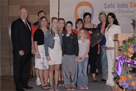 Shown above, Sen. Romine meets with local families at the annual Missouri Fallen Workers' Memorial Day in the rotunda of the State Capitol on Monday, April 22, 2013. The families of Andy Gammon and Robert Jett attended the event.