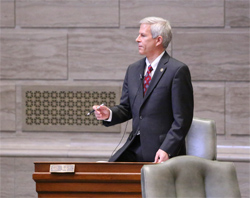 Senator Schaaf discussing one of the many bills taken up for a veto override motion in the Missouri Senate this week. |