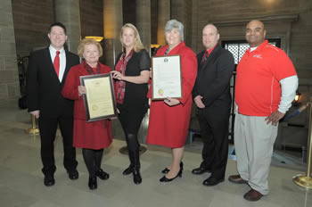 | Shown above, Sen. Walsh joined American Heart Association leaders and supporters in the Missouri Senate for Go Red Day at the Capitol on Wednesday, Feb. 6. |