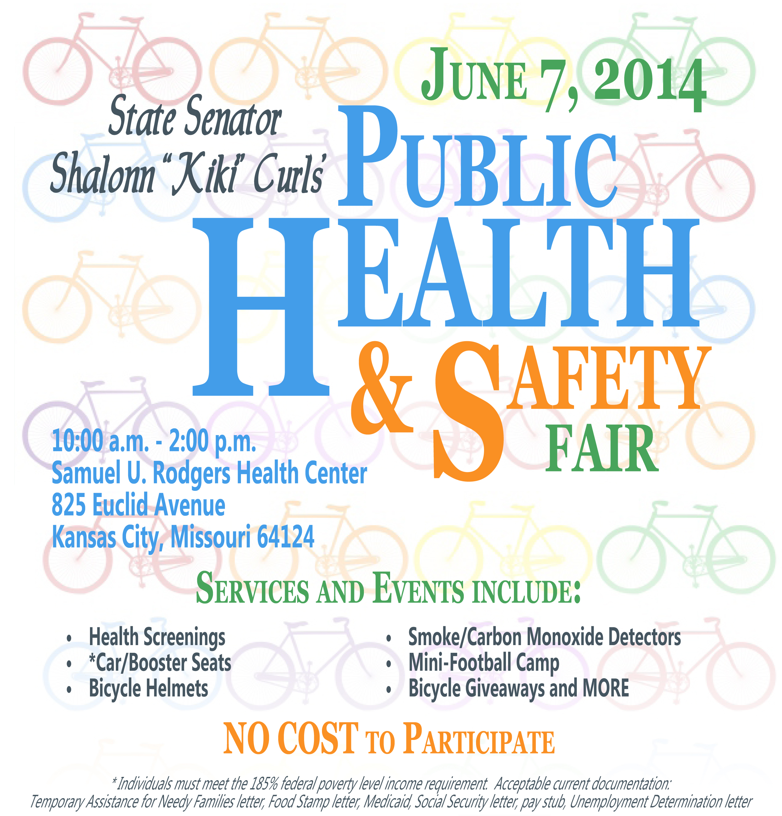 I will be hosting another Public Health & Safety Fair on June 7, 2014, from 10 am. to 2 p.m. at the Samuel U. Rodger's Health Center, located at 825 Euclid Ave. in Kansas City. Services and events will include health screenings, car and booster seats for those who meet federal poverty income level requirements, bicycle helmets and bicycle giveaways, a mini-football camp and much more! There is NO COST to participate and I urge citizens to attend this important event. |