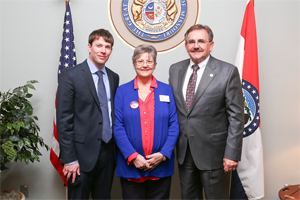 We also had other visitors at the State Capitol. It was great to see my good friend, Connie Larrew. She was here with the Silver Hair Legislature. Connie runs the Northside Nutrition Center in Poplar Bluff and does an incredible job advocating for seniors. Her husband, Mike, is a WWII veteran and does a lot of volunteer work for the center, delivering meals to those who aren’t able to leave their homes. Jason Bean and Trent Haggard from the Bootheel also visited this week. They are great advocates for Missouri’s agriculture industry. Trent runs the University of Missouri Delta Research Center in Portageville, and Jason is the Chairman of the Advisory Committee. I also enjoyed meeting with representatives from Delta Companies, Inc., a large and key employer in the district. Randy and Lorrie Schulz from Poplar Bluff and Larry Swindle from Kennett also visited and discussed issues relating to funeral directors.