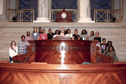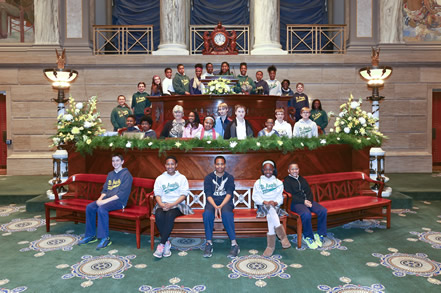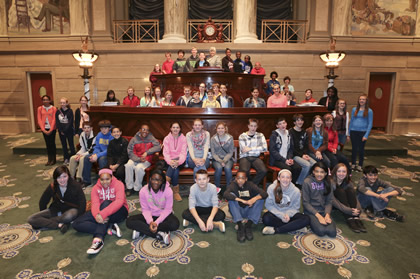 | Shown above, Sen. Walsh meets with students from St. Angela Merici Catholic School during their visit to the Capitol on Wednesday, April 16, 2014. |