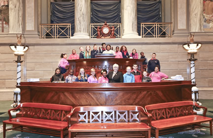 | Shown above, Sen. Walsh meets with seventh grade students from Christ Light of the Nations Catholic Church during their visit to the Capitol on Tuesday, April 29, 2014. |