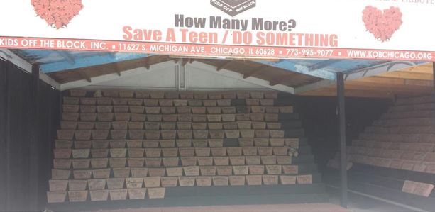Pictured below is one of the many initiatives sponsored by Kids Off the Block, a non-profit group committed to improving the lives of youth through a variety of means. These include outreach, life-enriching activities and providing safe environments for youth to learn and grow, both academically and personally. The group is founded by Diane Latiker, a Chicago native and advocate who, in 2011, was featured on CNN Heroes for her humanitarian contributions. Each of the bricks below represents another young person lost by gun violence. These individual reminders of that terrible cost add to a sum that is growing every day. The display I visited does more than remind – it challenges us to act, and make the changes necessary to stop this ongoing tragedy.