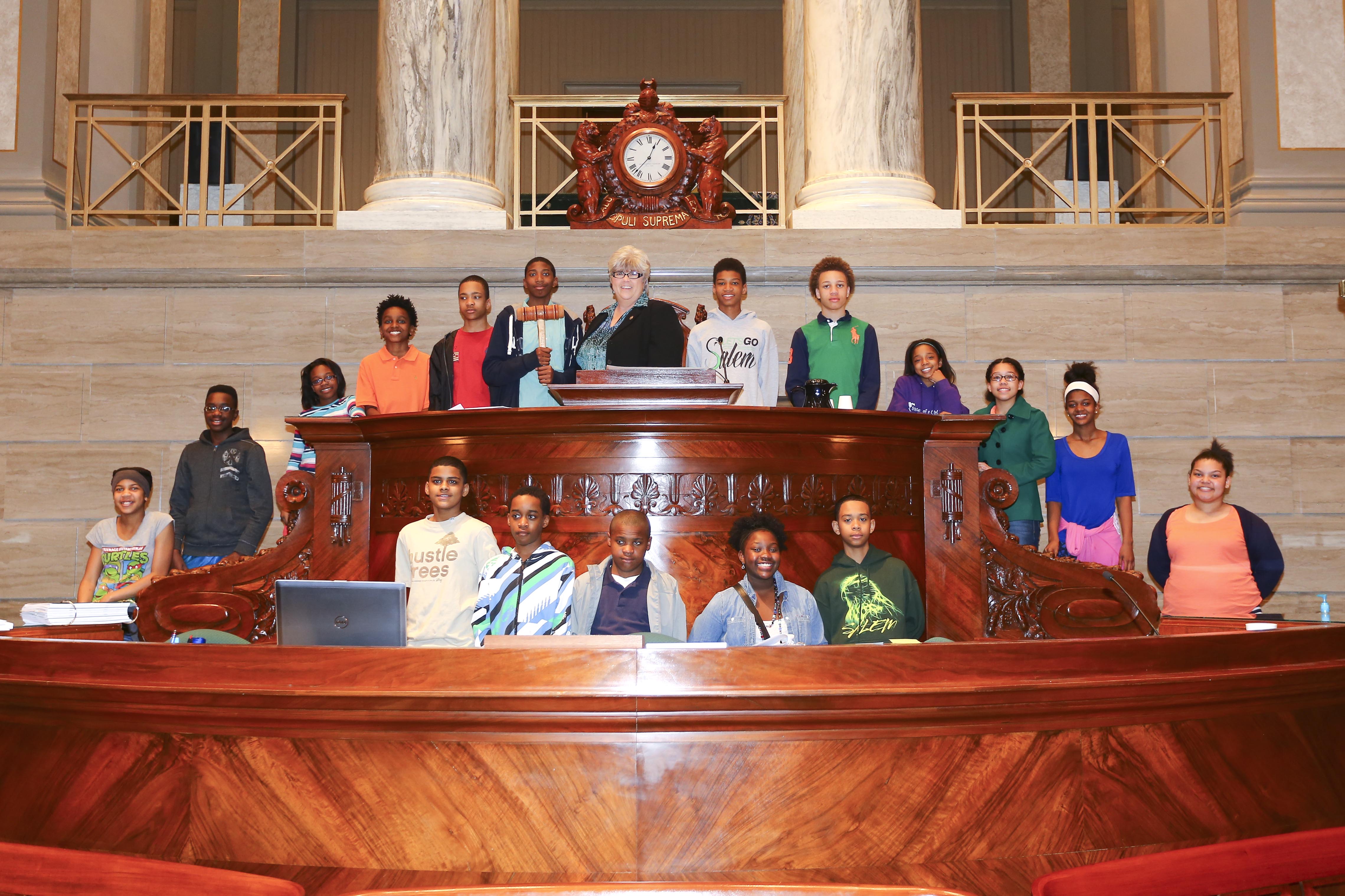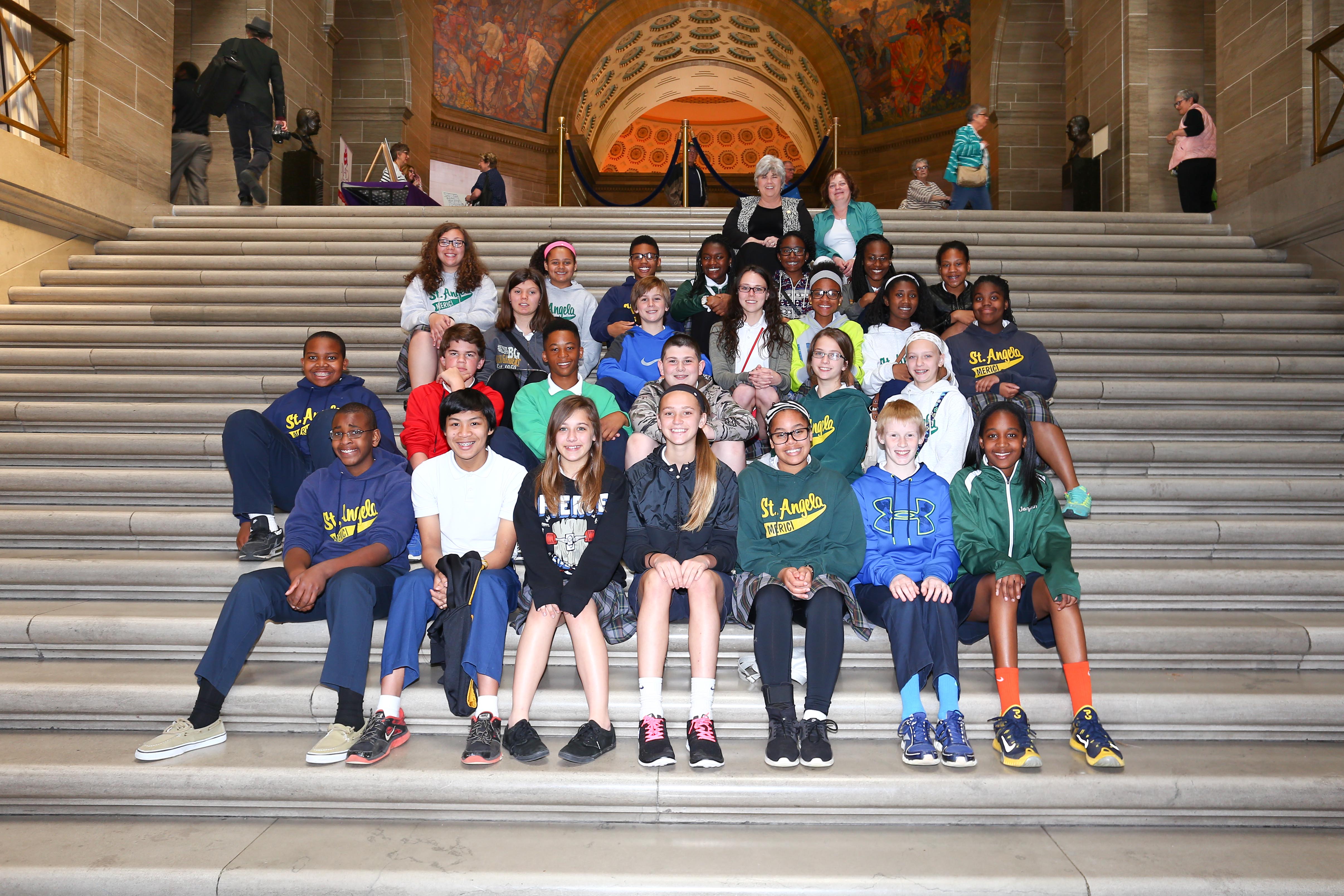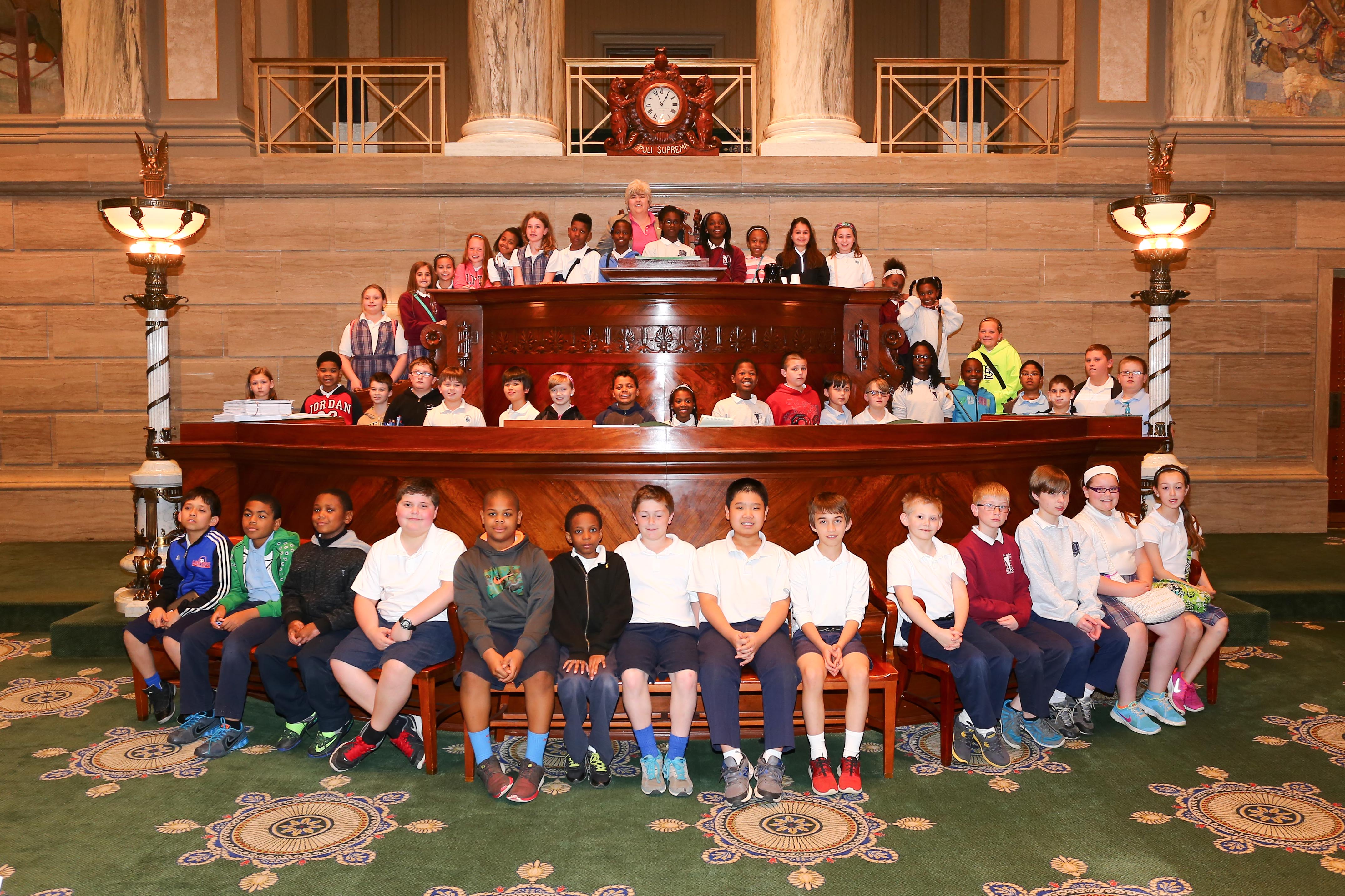Shown above, Sen. Walsh meets with 7th grade students from St. Angela Merici School during their visit to the Capitol on Wednesday, April 22, 2015. |