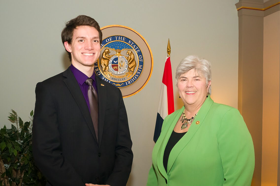 | Brett Combs, 2018 Legislative Intern and Minority Floor Leader Senator Gina Walsh, R-Bellefontaine Neighbors, who serves the 13th Senatorial District. |