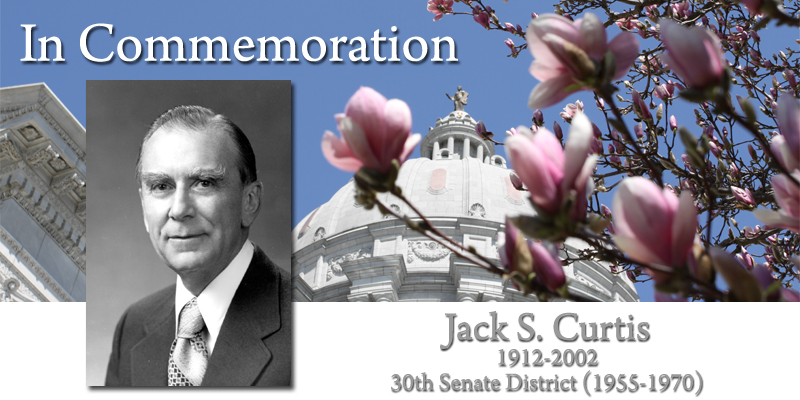 Jack S. Curtis served the people of the 30th District (Greene County). Born in Hartville, he received his education from Hartville and Springfield public schools; Drury College, where he received a Bachelor of Arts degree; and the University of Missouri, where he received a Bachelor of Laws degree. Senator Curtis practiced law in Springfield; served as city attorney of Springfield from 1941-1942; was the project attorney with the War Relocation Authority from 1943-1944; and a lieutenant in the U.S. Naval Reserve from 1944-1946. Senator Curtis was elected to the Senate in 1954, and re-elected in 1958, 1962 and 1966. During the 70th General Assembly, he served as Minority Caucus Chairman. In the 71st and 73rd General Assemblies, Senator Curtis served as Minority Floor Leader. (Republican)