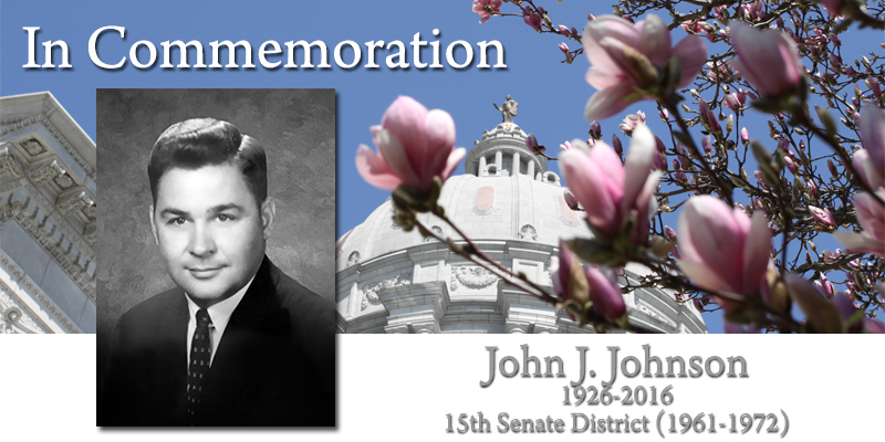 John J. Johnson served the people of the 15th District (part of St. Louis County). Born in St. Louis, he attended Roosevelt High School and received a bachelor’s degree and master’s degree from Washington University. He served in the U.S. Navy in the South Pacific Theater from 1944 to 1946. During his professional career, he worked as an insurance broker, a real estate investor and as a civil worker for the U.S. Air Force and U.S. Army. In 1963, he started South County Bank in St. Louis, which merged with Mark Twain Bank in 1968. Senator Johnson was first elected to the Senate in 1960 and served through 1972. (Democrat)