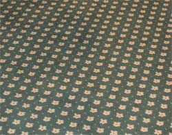 The upper gallery carpeting (bottom right) is a slightly darker green in background color and is punctuated with clusters of four white petals, which are found on Missouri's state tree, the flowering Dogwood.