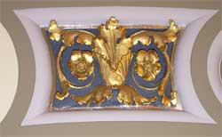 The ornamental filigree and bas-relief patterns along the dome's base and interior are carved in plaster and wood. During the restoration project, each segment of every carving was carefully stripped, cleaned and re-coated in the closest possible match to the original finish.