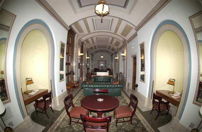 | One of the innermost galleries that is used primarily as a meeting room for the Senators, located between the chamber and the rotunda, has been designated the Kirchoff Gallery.