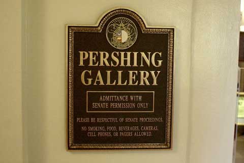 Side Galleries: Two side galleries, seldom seen by the public, adjacent to the north and south entrances serve as ante-rooms to the Senate Chamber. In keeping with the historic themes throughout the Senate Chamber, each of these galleries is dedicated to a prominent figure in Missouri history.