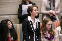 Senator Schaefer introduced Ilinca Popescu along with 9 other students participating in National History Day in Missouri (NHDMO) which is a yearlong history education program, sponsored by The State Historical Society of Missouri, in partnership with the Missouri Humanities Council. Ilinca, Smithton Middle School Student, was a 3rd-place medalist at the 2013 National History Day in Missouri State Contest, winning for her excellent paper: Messing with the Wrong Country: A Turning Point in Soviet Union Rule.