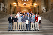 Senator Schaefer with Shelby Ringdahl, reigning Miss Missouri 2013, and Great Circle Columbia Advisory Council Members Randy Boehm, Ryan Bross, Jay MacLellan, Mark Schlemper and Great Circle Columbia Staff Becca Nowlin, Marissa Peterson and Susan Reeves on their visit to the Capitol.
