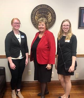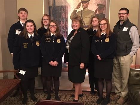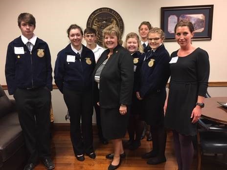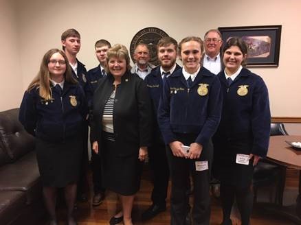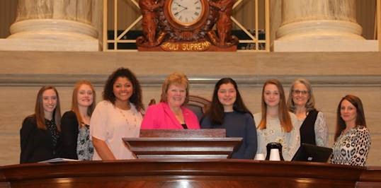Pictured above: Haley Mackey, Brooke Young, Lerran Yoder, Sen. Crawford, Brooke Anderson, Kaci Barnes and Brandi Maddux.