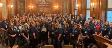 Pictured above: Charlotte Haden, Cedar Co.; Allen Huff, Henry Co.; Sharon Cumpton, Bates Co.; Carol Johnson, Dallas Co.; Sen. Crawford; Gary Matheny, St. Francois Co.; Tammy Bond, Vernon Co.; Karen Guinn, Laclede Co.; and Janet Rosenauer, Andrews Co.