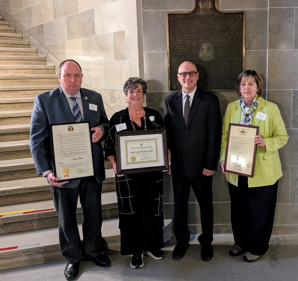 One of my greatest joys in representing the 21st District in the Missouri Senate is when I get to draw attention to citizens accomplishing great things. I got to present two Courtesy Resolutions this week. The first was to members of the Friends of Pharis Farm in Liberty, who recently received the Missouri Preservation McReynolds Award for their efforts to preserve this piece of Missouri history.