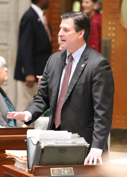 That afternoon the Senate brought up Senate Bill 509, the tax cut bill that the body passed earlier in the session and that was vetoed by Governor Nixon last week. The bill phases in a reduction of individual incomes taxes by one half of one percent over a period of five years and phases in an income tax deduction for small businesses that will allow those businesses to deduct 25 percent of business income over a period of five years. Both changes will begin in 2017. The legislation contains a trigger that only allows such reduction to go into effect when the highest net general revenue collected in the previous three fiscal years is exceeded by at least $150 million. Since the bill was a Senate bill, it was first brought up for an override vote in the Senate, where it received the necessary. From there, the bill was sent to the House. After debate Monday evening, the House brought it up for a vote on Tuesday and was ultimately successful in overriding the veto.