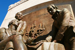 This bronze overlooks the north side of the State Capitol. It depicts Robert Livingston (standing), James Monroe (seated) and Francis Barbe-Marboiis signing the Louisiana Purchase. The sculpture was originally designed for the 1904 World's Fair held in St. Louis.