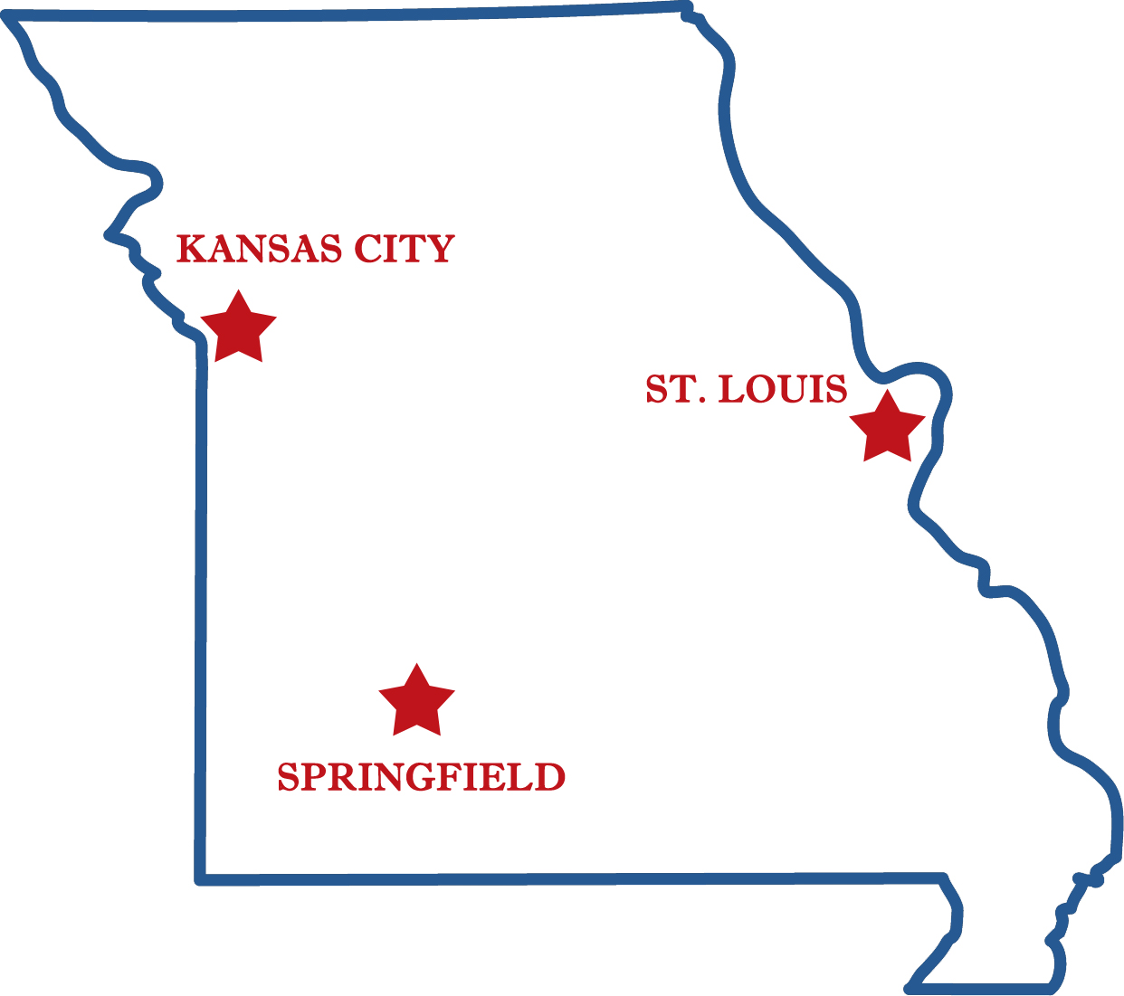 | More than half of Missouri’s state senators reside in one of the state’s three largest metropolitan areas — Kansas City, St. Louis and Springfield. | In 2001, the Republican party won the Missouri Senate majority for the first time since 1948. Current party split is 24 Republicans and 10 Democrats. | ||