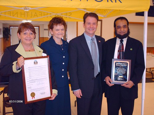 Honoring Sikeston Family Clinic (From left to right, Debbie Wolford, Janice Pirner, Senator Crowell and Dr. Ilyaf Burney)