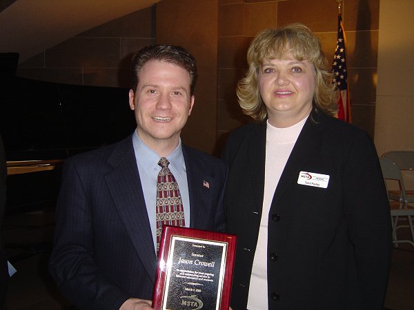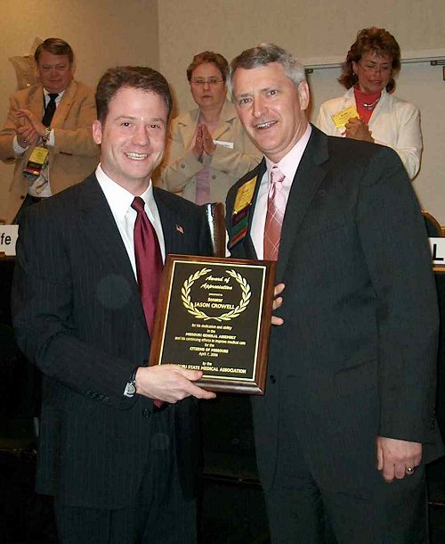 Senator Crowell receiving the 2006 Legislative Award from MSMA President Dave Barbe