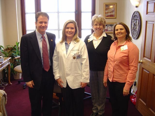 George and Mary Ann DeMyers visit with Senator Crowell about the Sussana Wesley Learning Center in East Prarie Senator Crowell visits with representatives from the MS Society for MS Week Representative Brandom and her FCCLA shadow Chelsea Menz stop to pose with Senator Crowell Senator Crowell and his FCCLA shadow, Angie Club, from Zalma High School