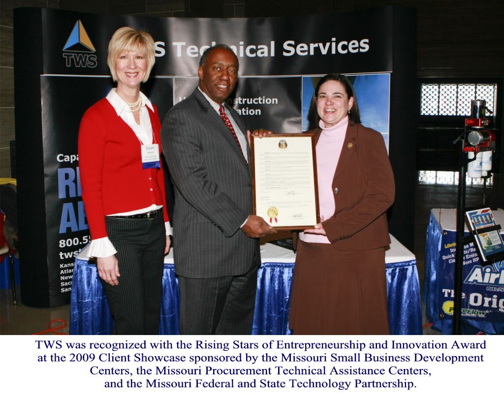 1/28/09 Senator Justus presents a resolution to William Session, CEO of TWS Technical Services, LLC. TWS was recognized with the 2009 Rising Stars of Entrepreneurship and Innovation Award.