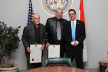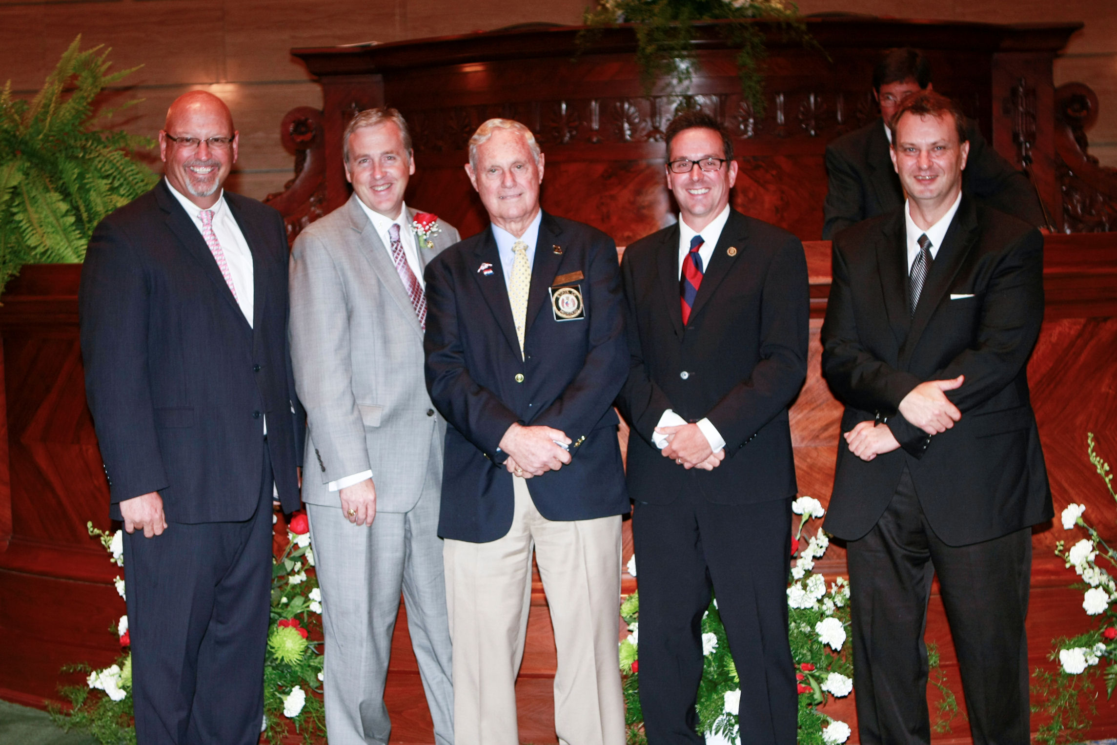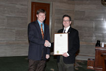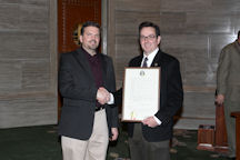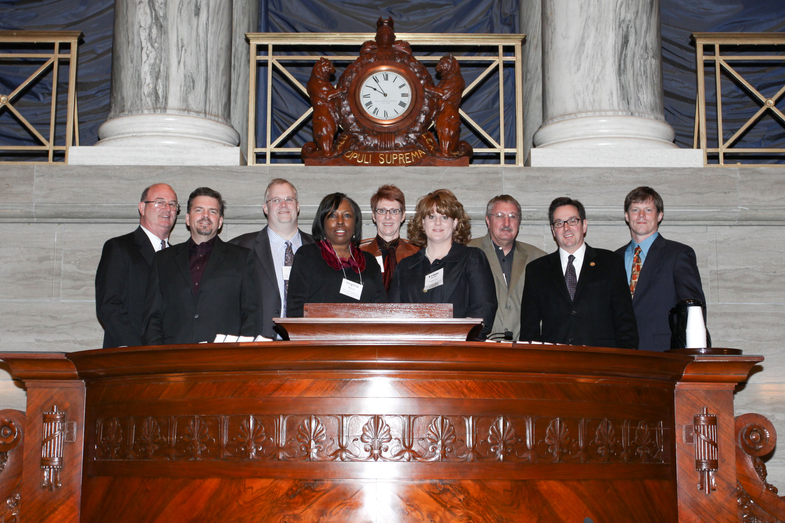 Senators Kevin Engler, Charlie Shields, Kurt Schaefer and Victor Callahan congratulating Bill Wyrick for his 15 years of service with the Missouri Senate.