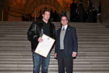 Senator Schaefer with his father-in-law, Doorman Bill Wyrick, wife Stacia, daughter Lena, and sons Max and Wolf.