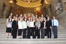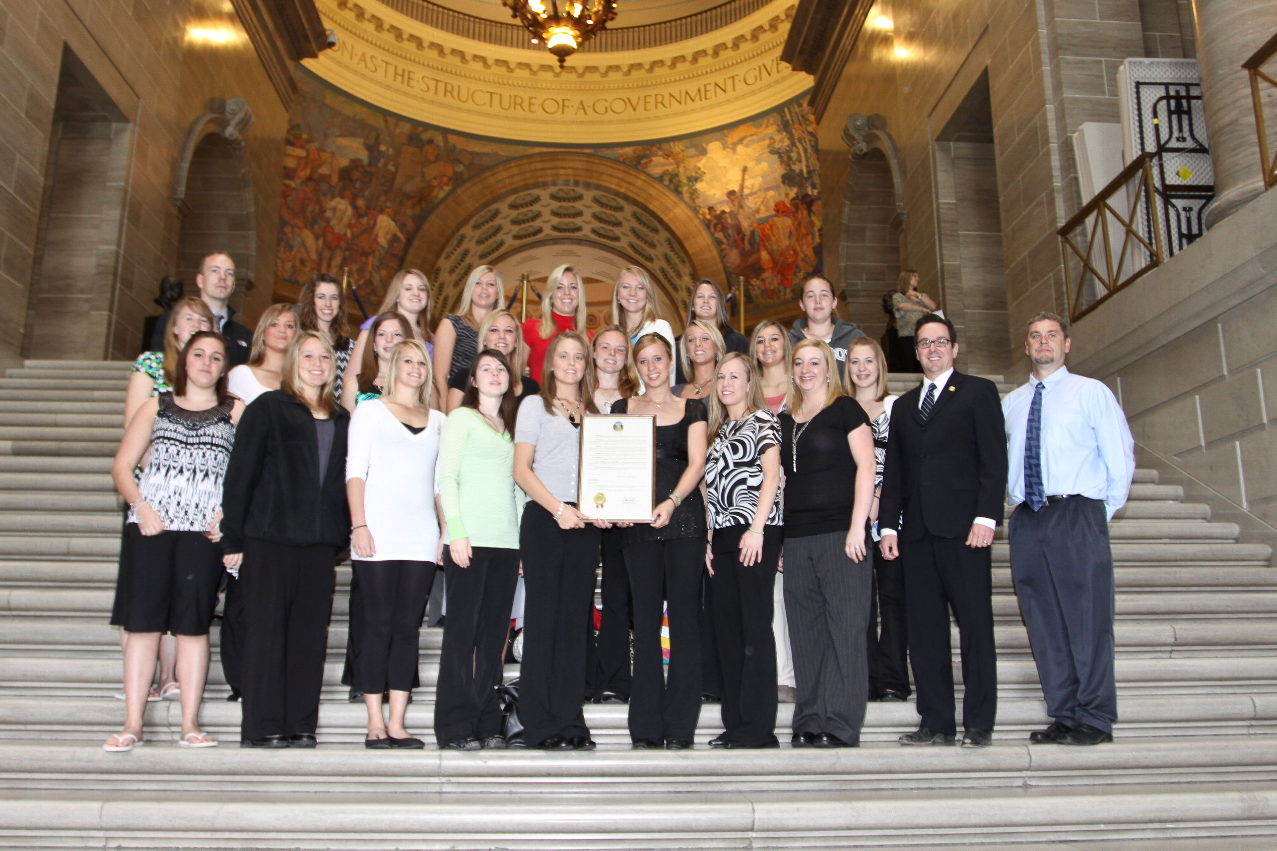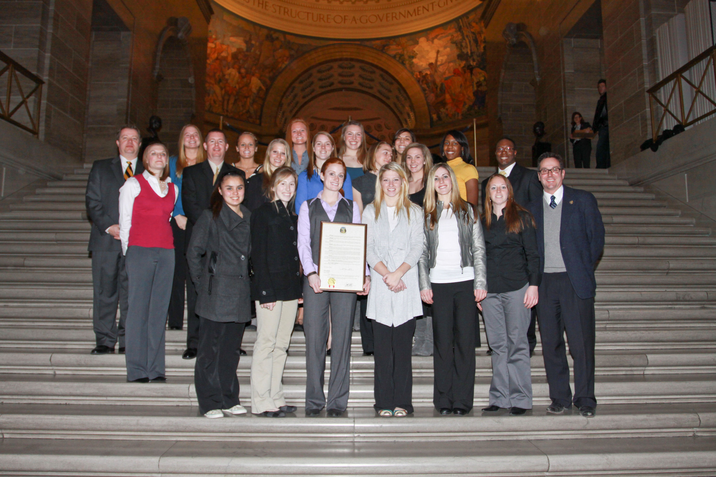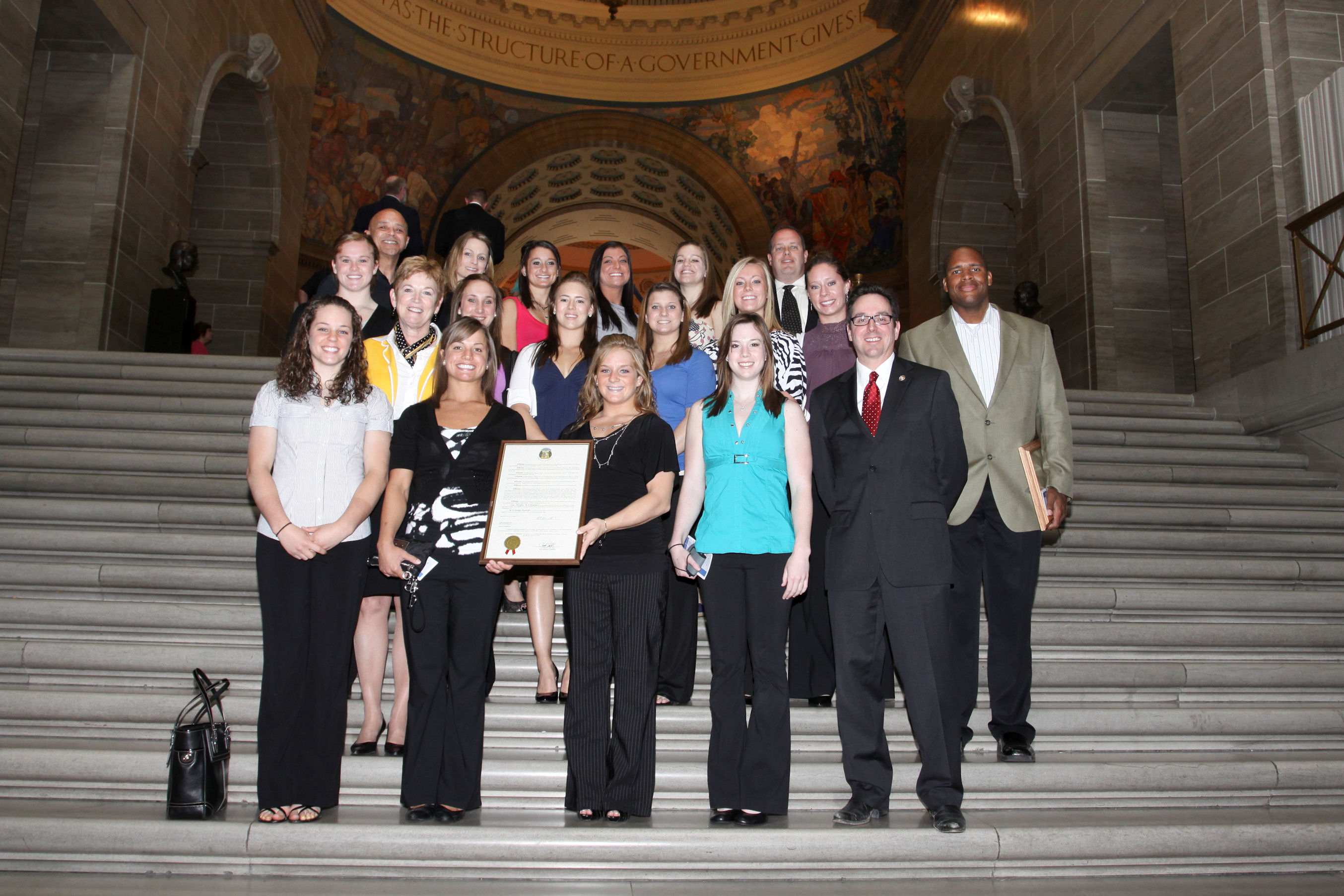 University of Missouri’s Ladies Gymnastic Team pictured with Senator Schaefer during their visit to the Capitol.