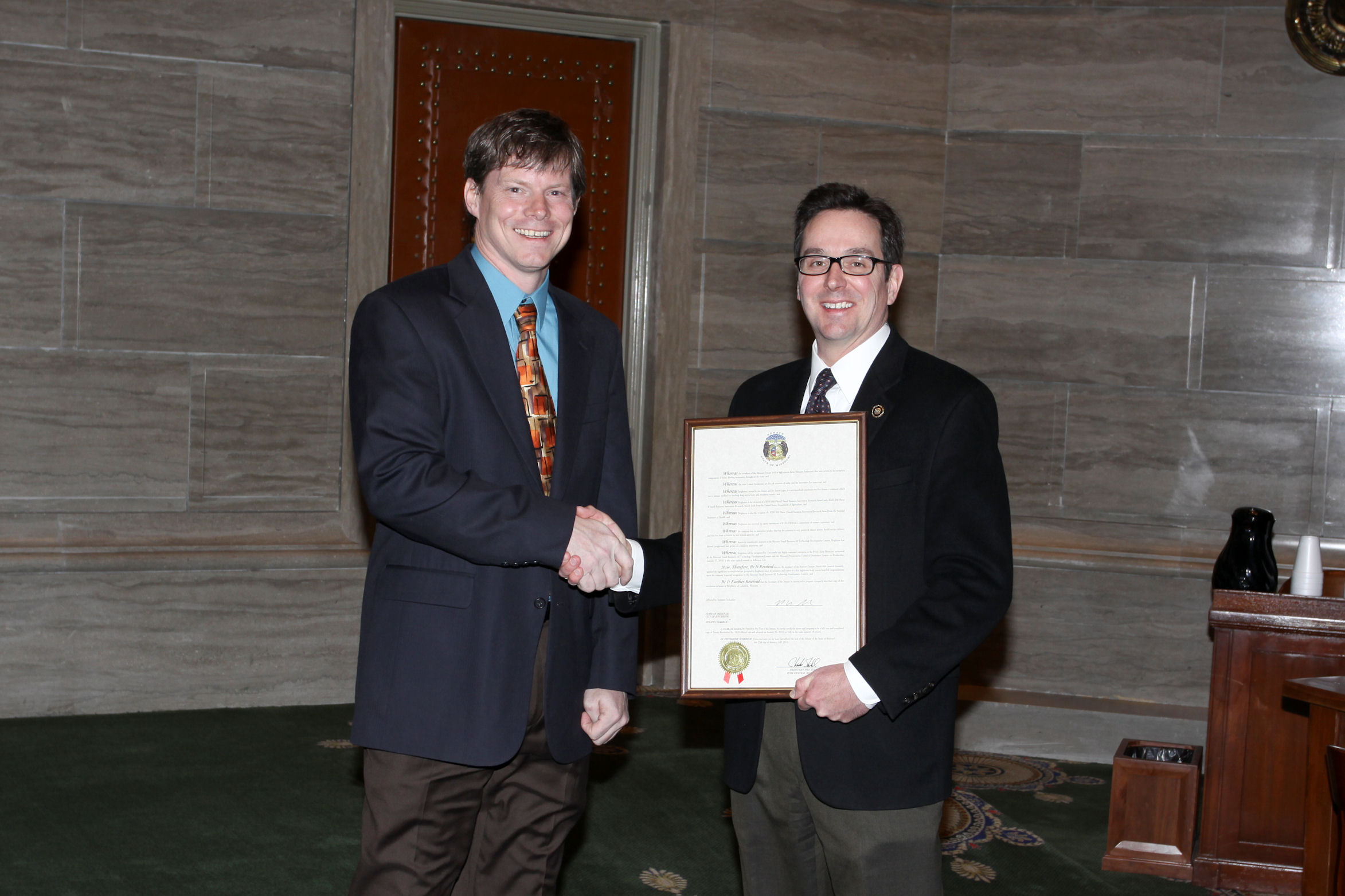 - Senator Schaefer with Dr. Rajiv Dhand at the University of Missouri Monday April 19, 2010 press conference.