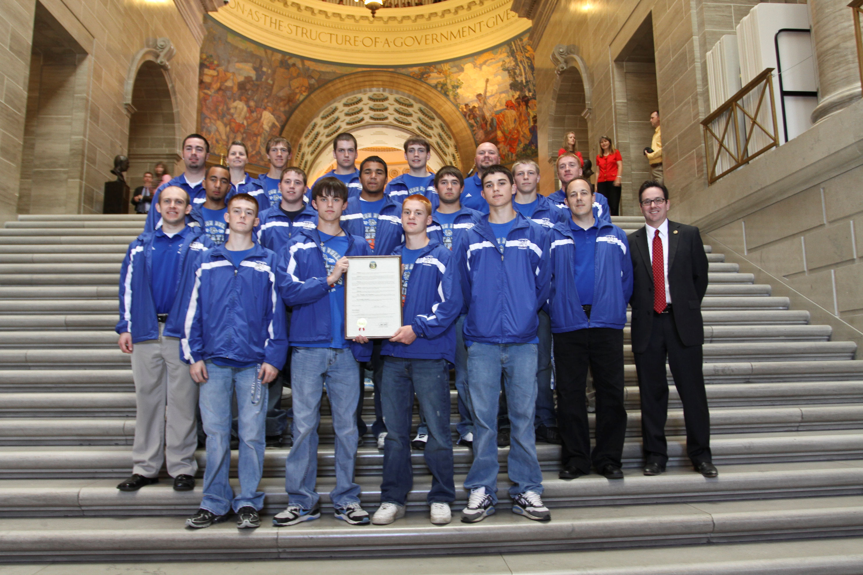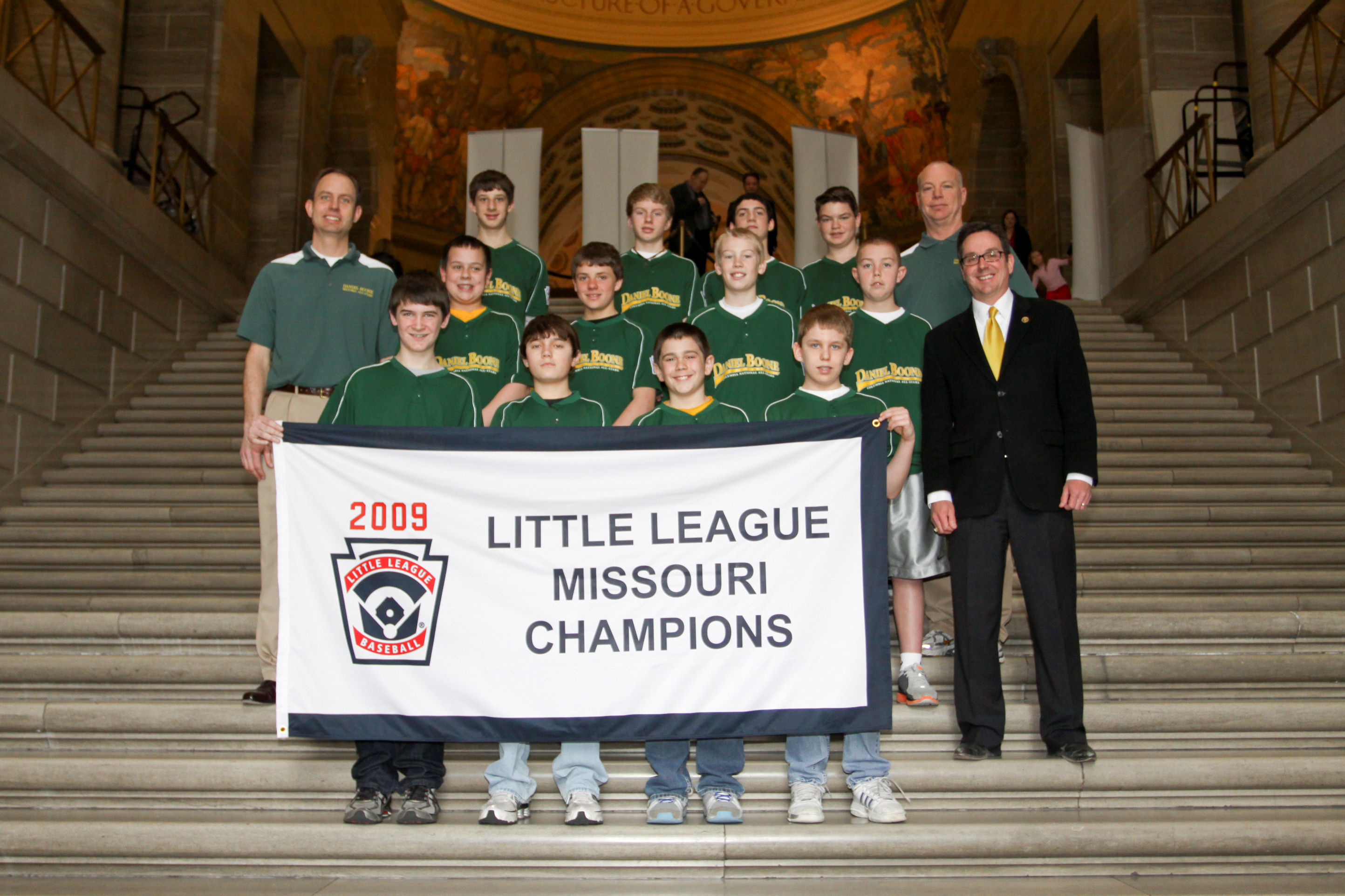 - Senator Schaefer with the Daniel Boone Little League Team on the Grand Staircase in the Capitol after being introduced to the Senate.