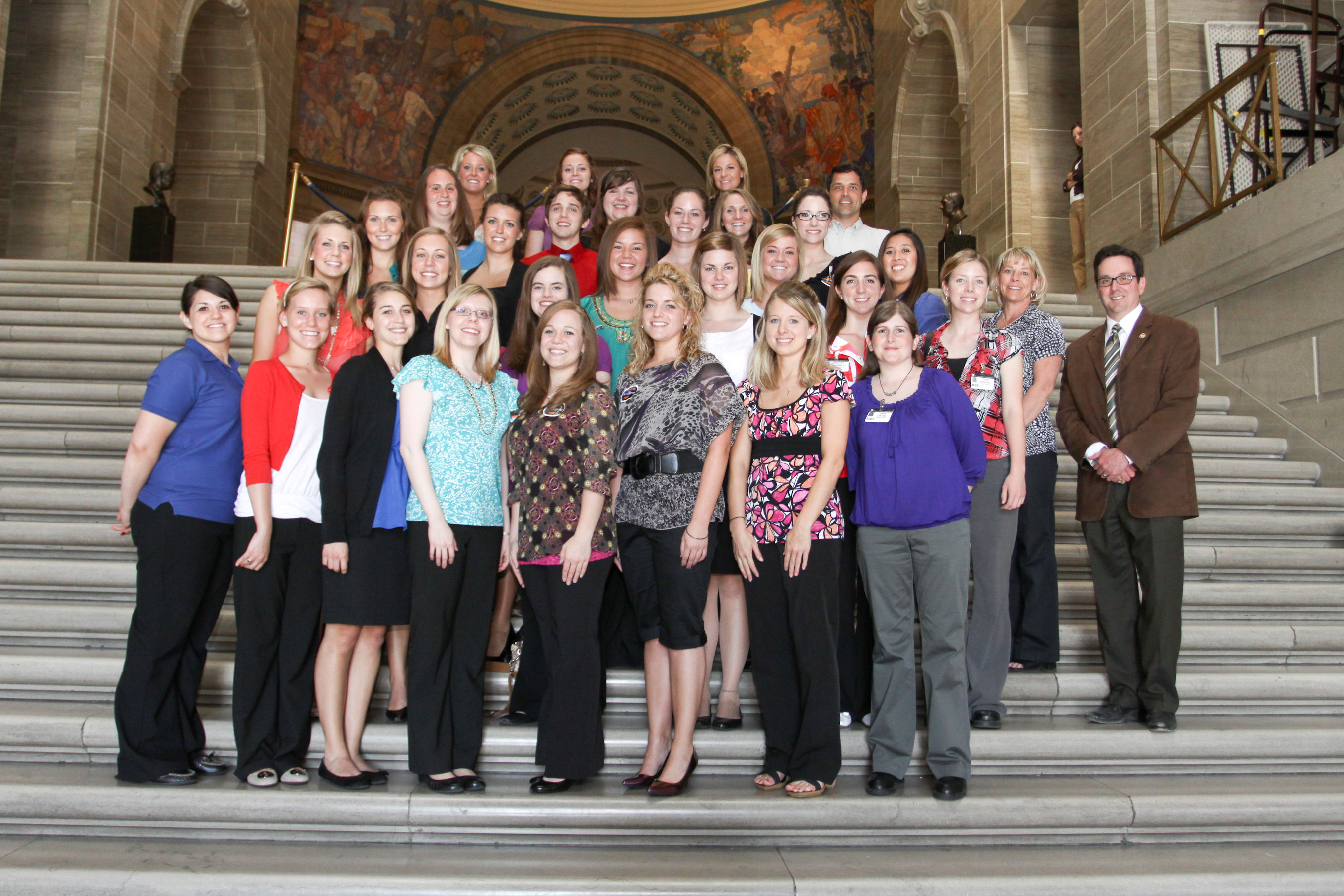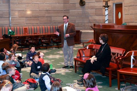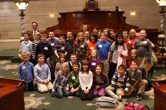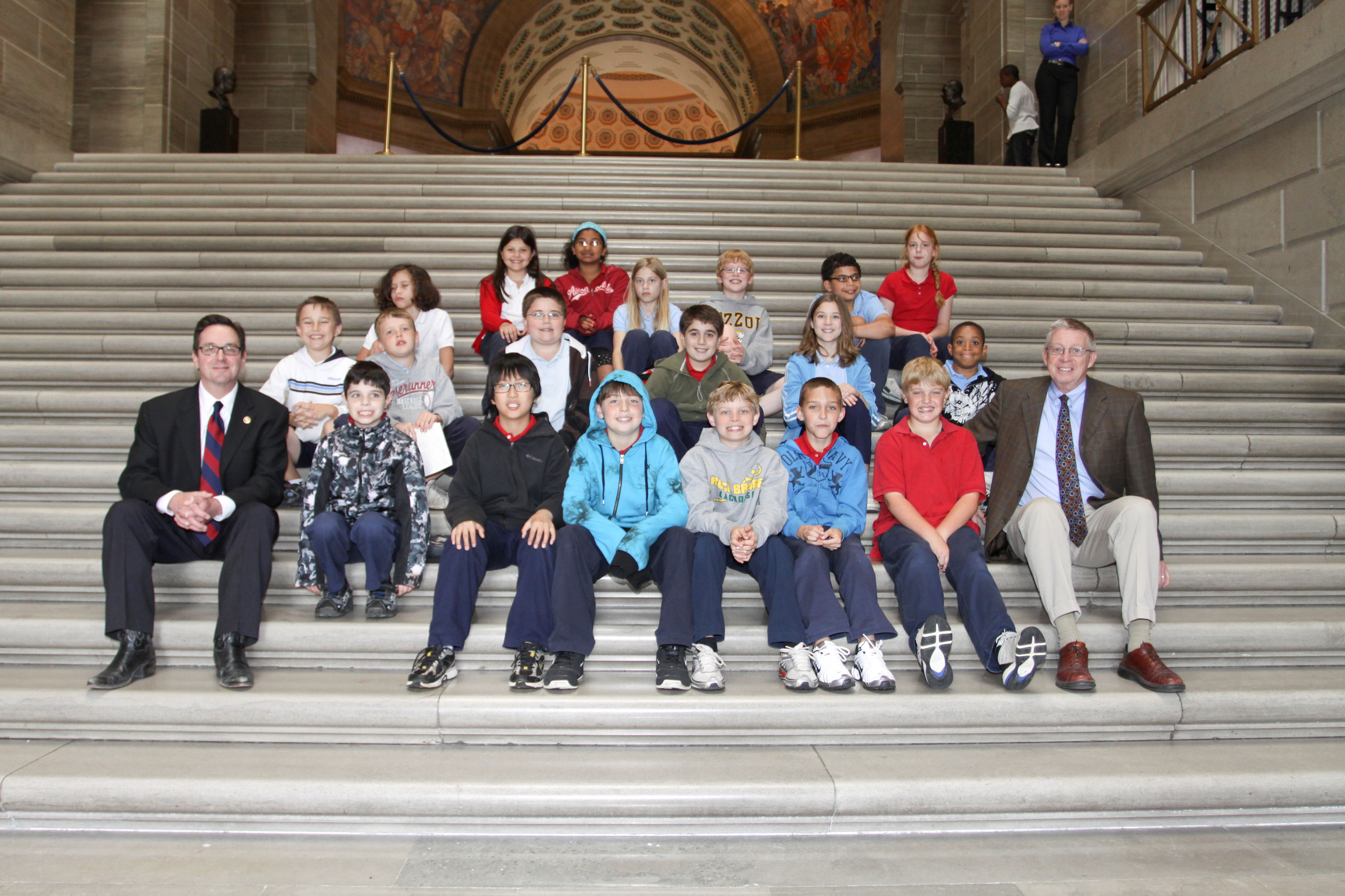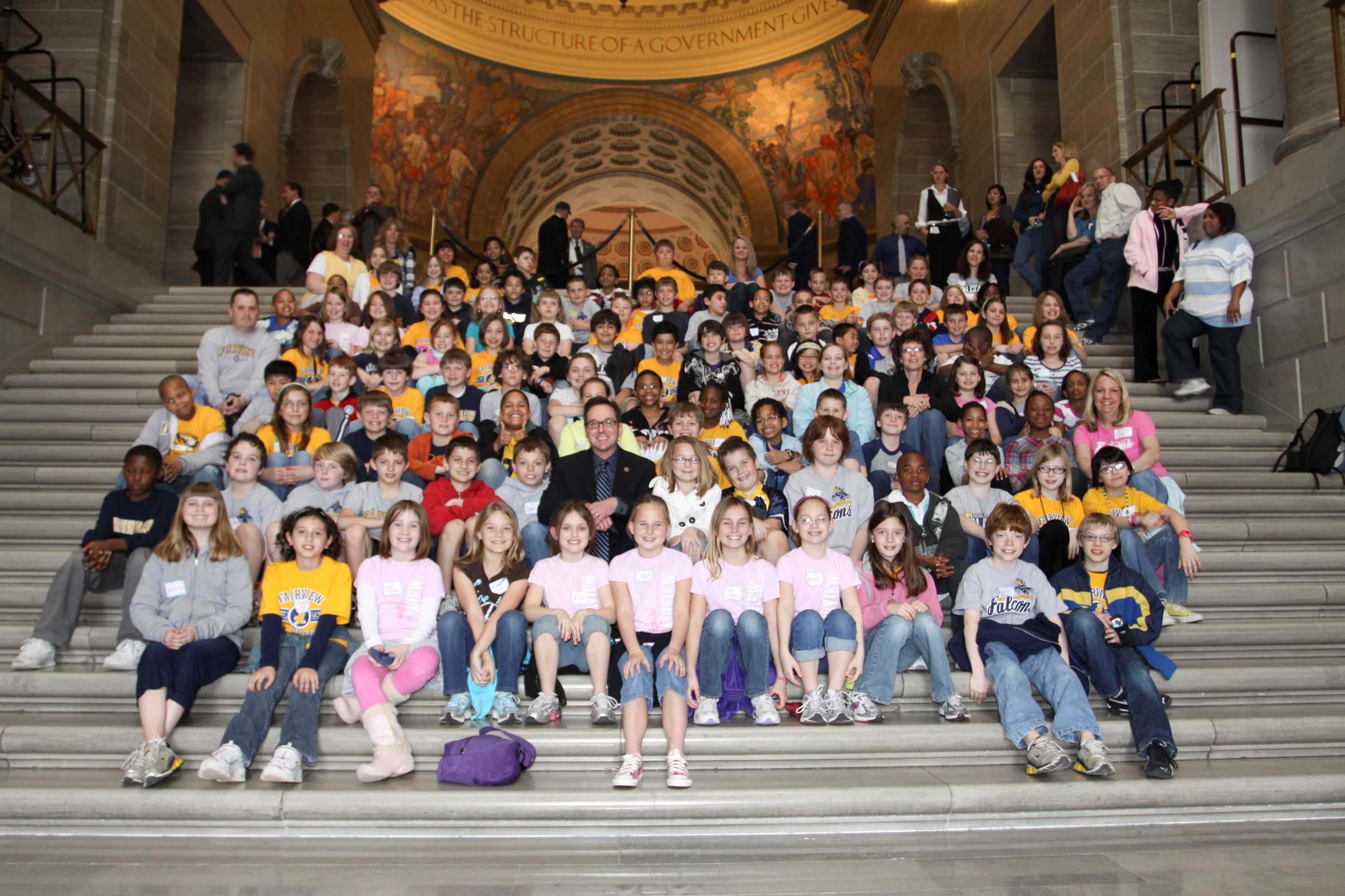 - 4th grade students from Fairview Elementary School in Columbia pictured on the Grand Staircase with Senator Schaefer during their visit to the Capitol.