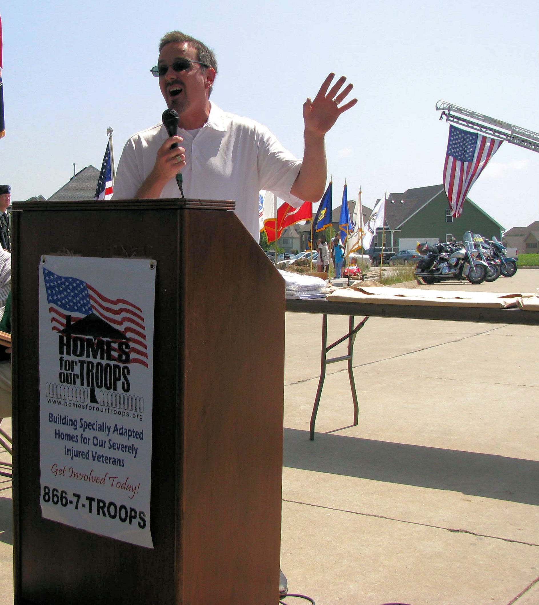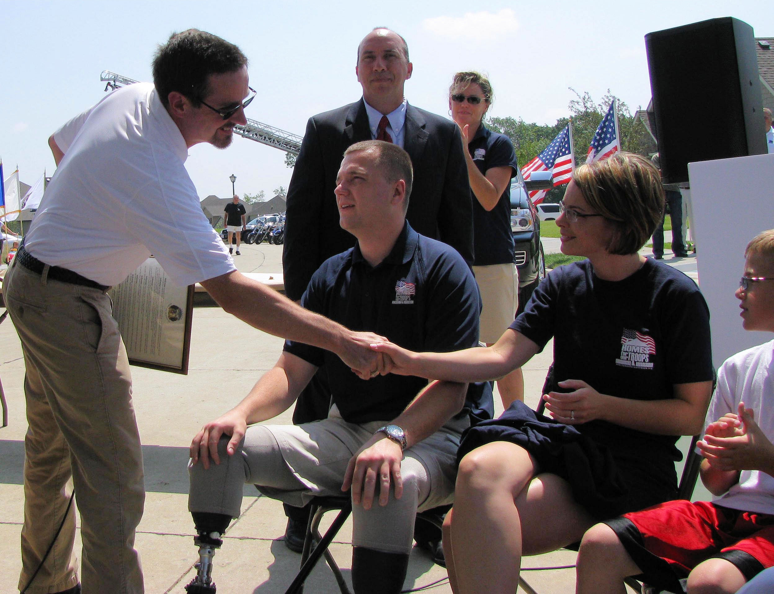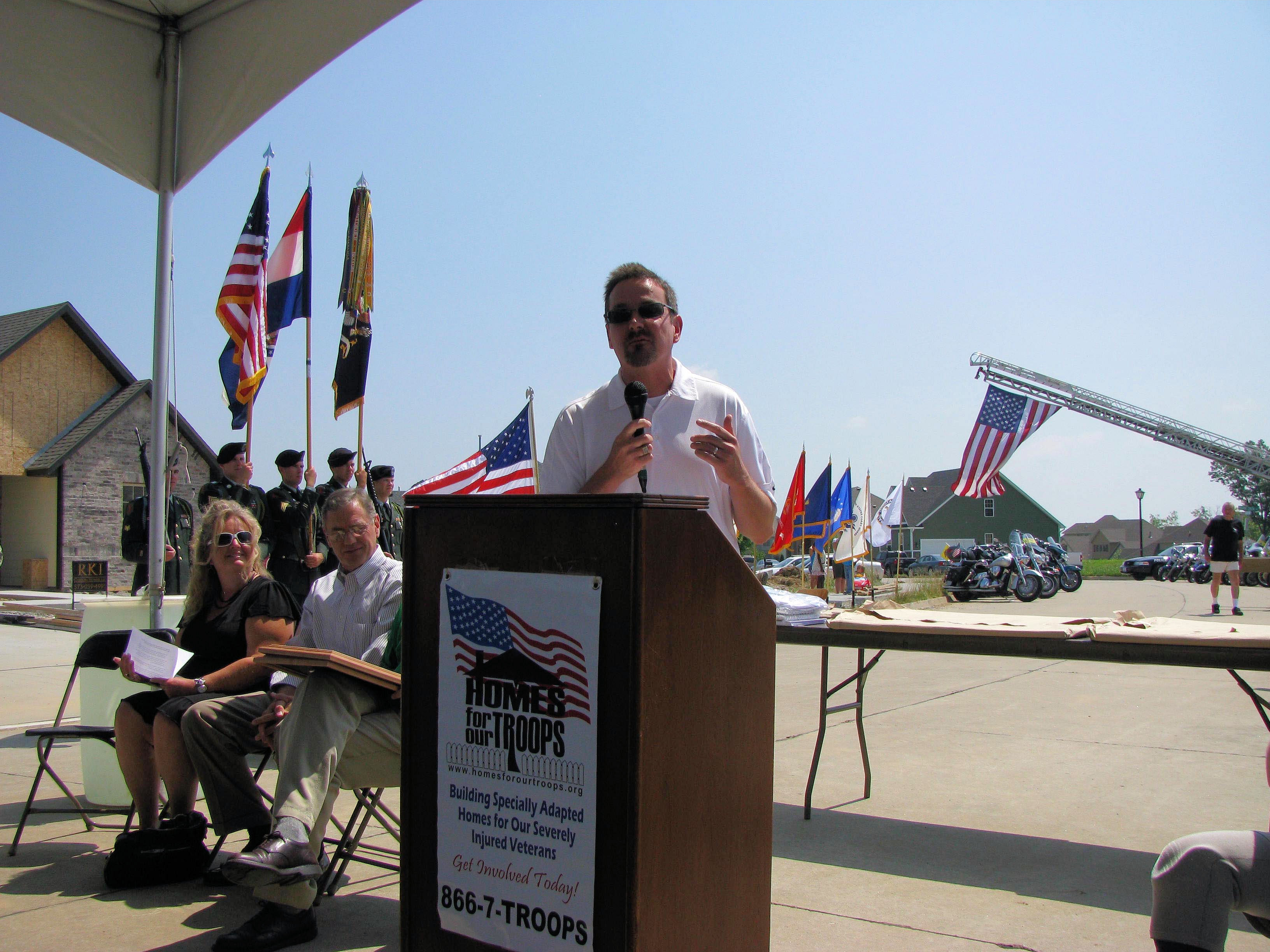 Columbia Missouri – Senator Schaefer speaks at the Key Ceremony for Sgt Robert Canine's House – The home was sponsored by the Homes for Troops and the Missouri Credit Union Association.