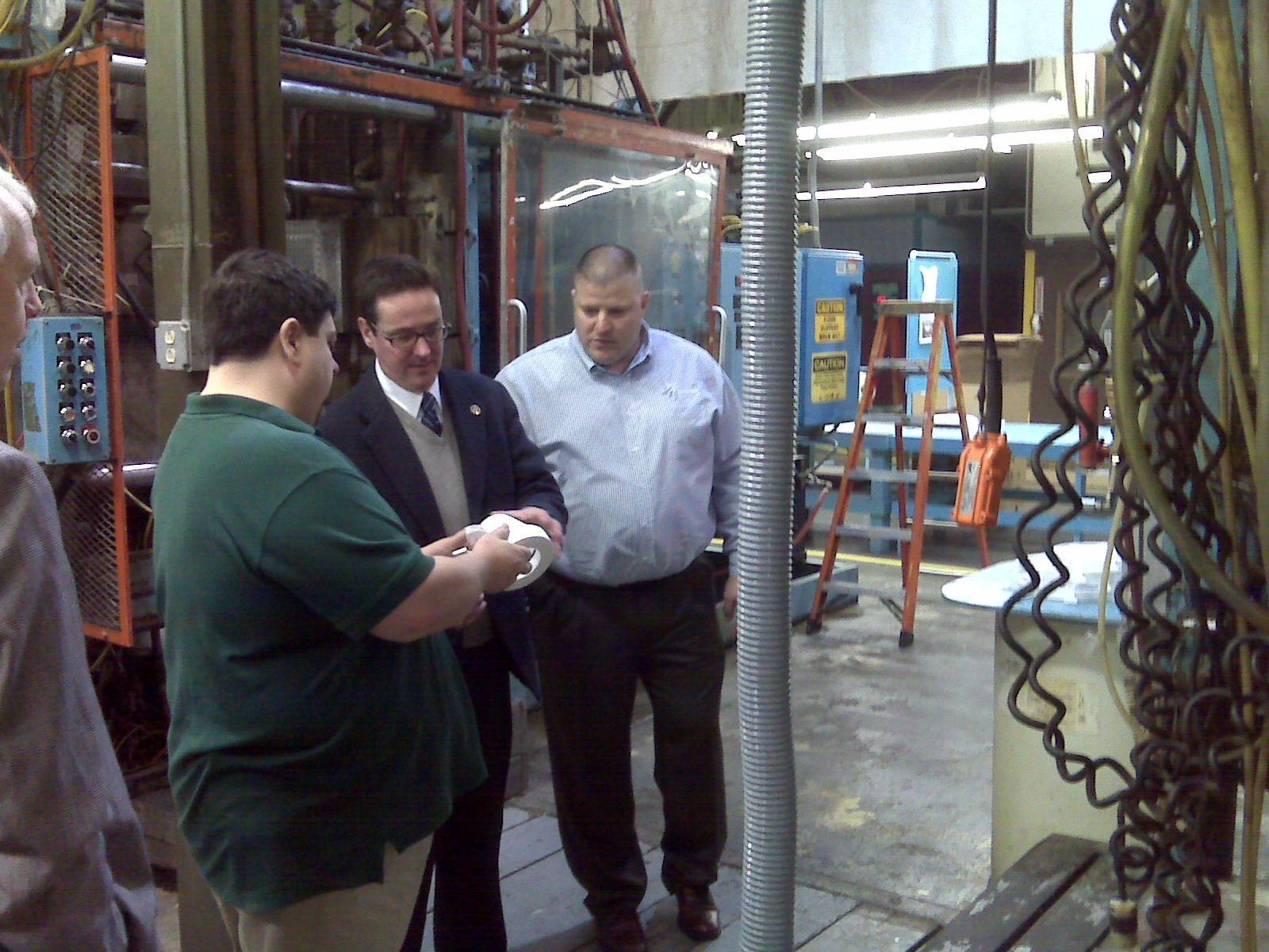 - Senator Schaefer with Barry Stevens and Lance McCann on tour of the Alliance Foam Company in Centralia.