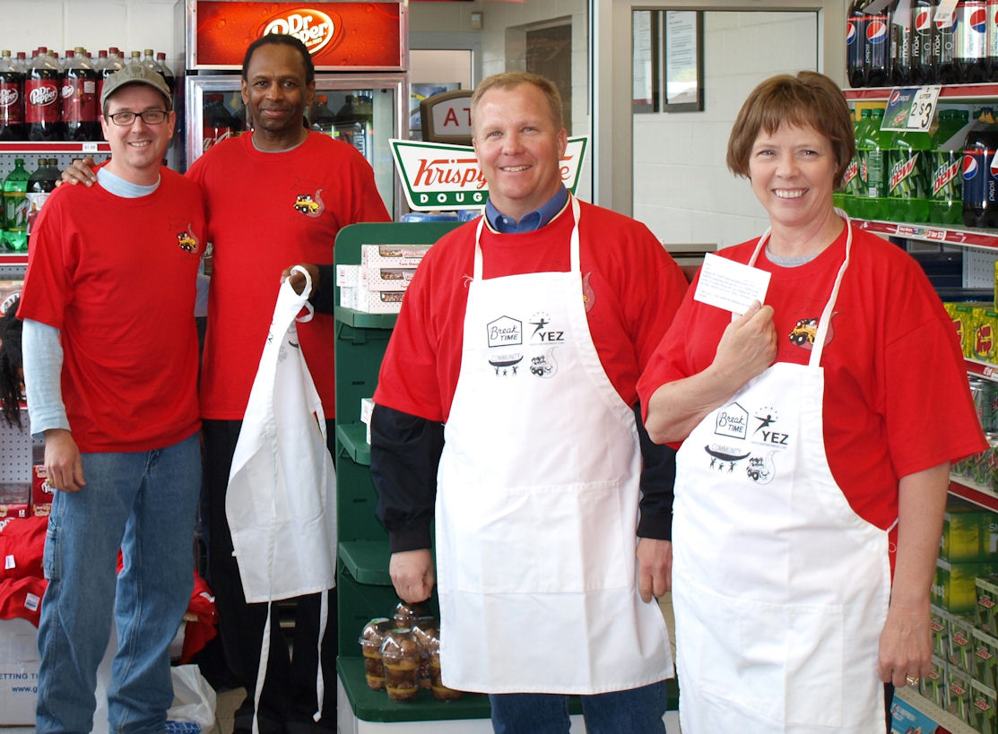 Senator Schaefer with Lorenzo Lawson - Executive Director of Youth Empowerment Zone, Skip Elkin - Boone County Commissioner, and Karen Mickey - Youth Empowerment Zone Board of Director member, at the April 23, 2010 “Driving to Success” celebrity pump fundraiser for the organization.