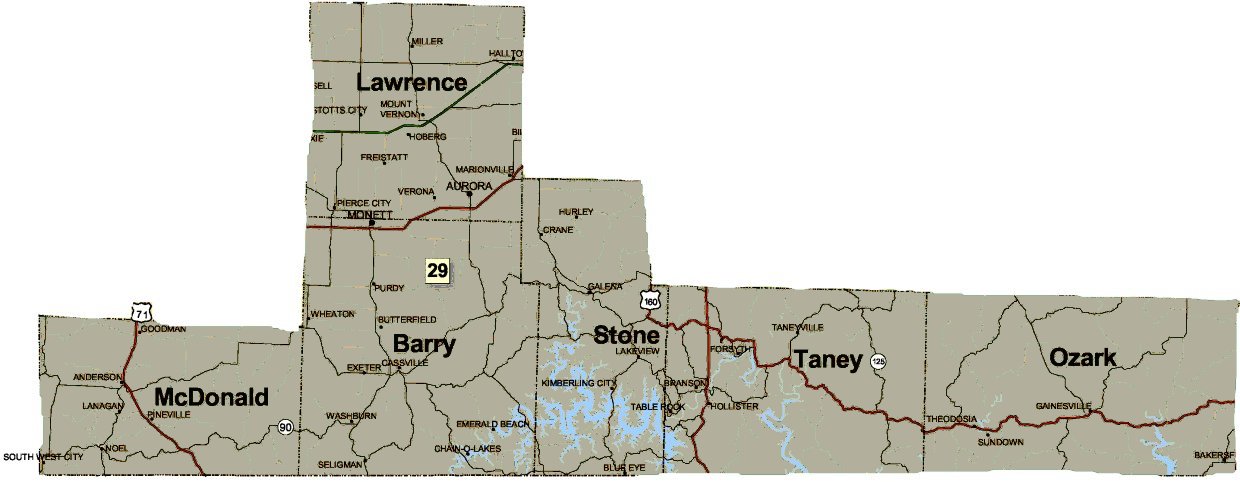 Counties Represented: Barry, Lawrence, McDonald, Ozark, Stone and Taney Legislative Service: Elected to the Senate: 2005, 2008 House of Representatives: 2002