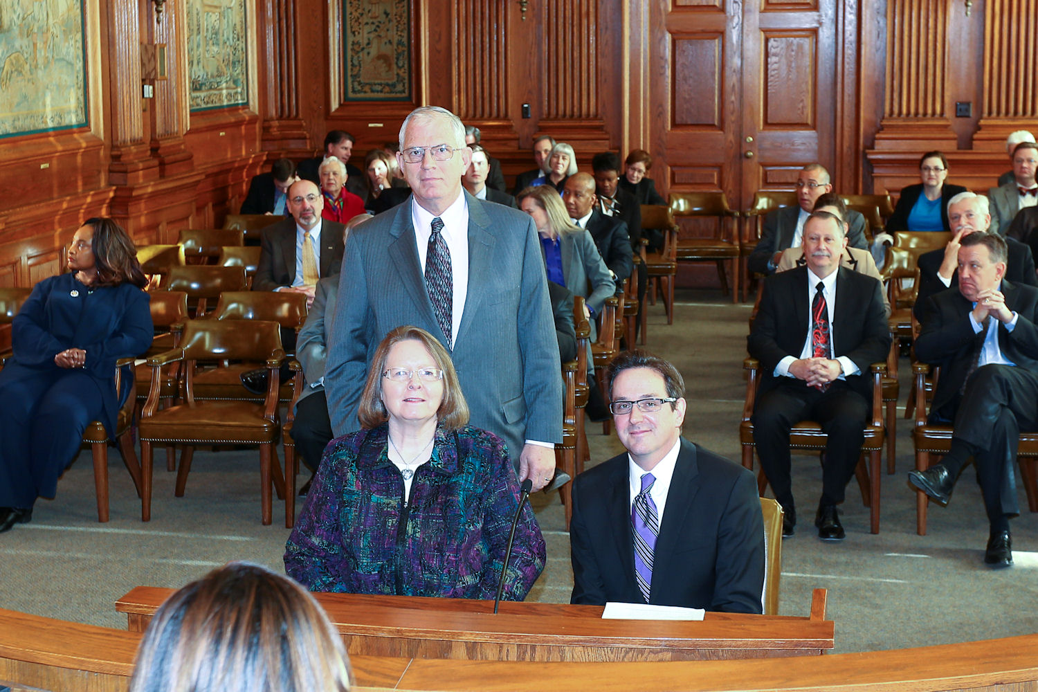 Renee Stucky with Senator Schafer during her gubernatorial appointment hearing to the State Committee of Psychologists.
