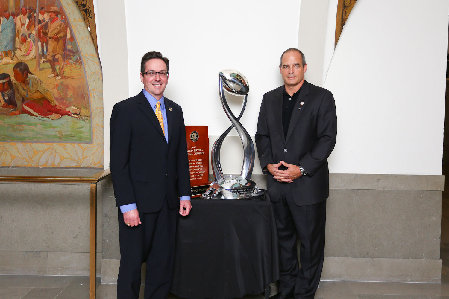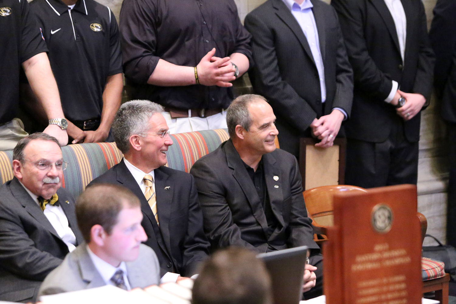 Senator Schaefer introduced the University of Missouri's Football Team and Head Coach Gary Pinkel to the Missouri Senate. With Coach Pinkel were Mike Alden, Athletic Director for the University, and MU Chancellor Richard Bowen Loftin.