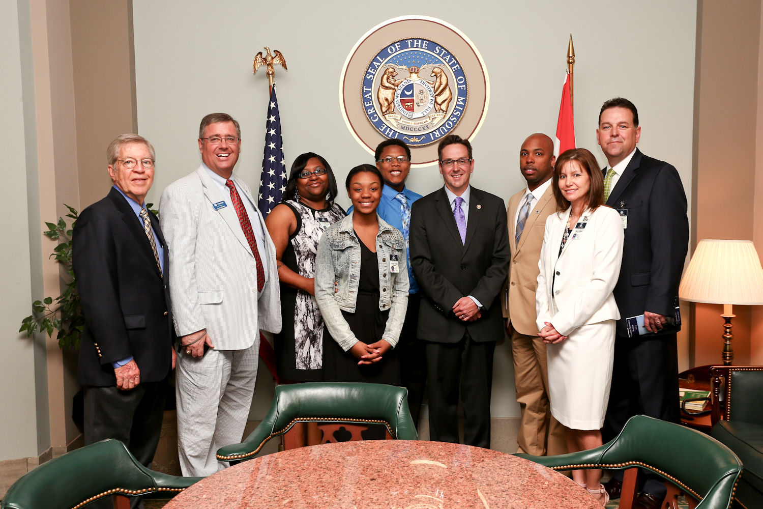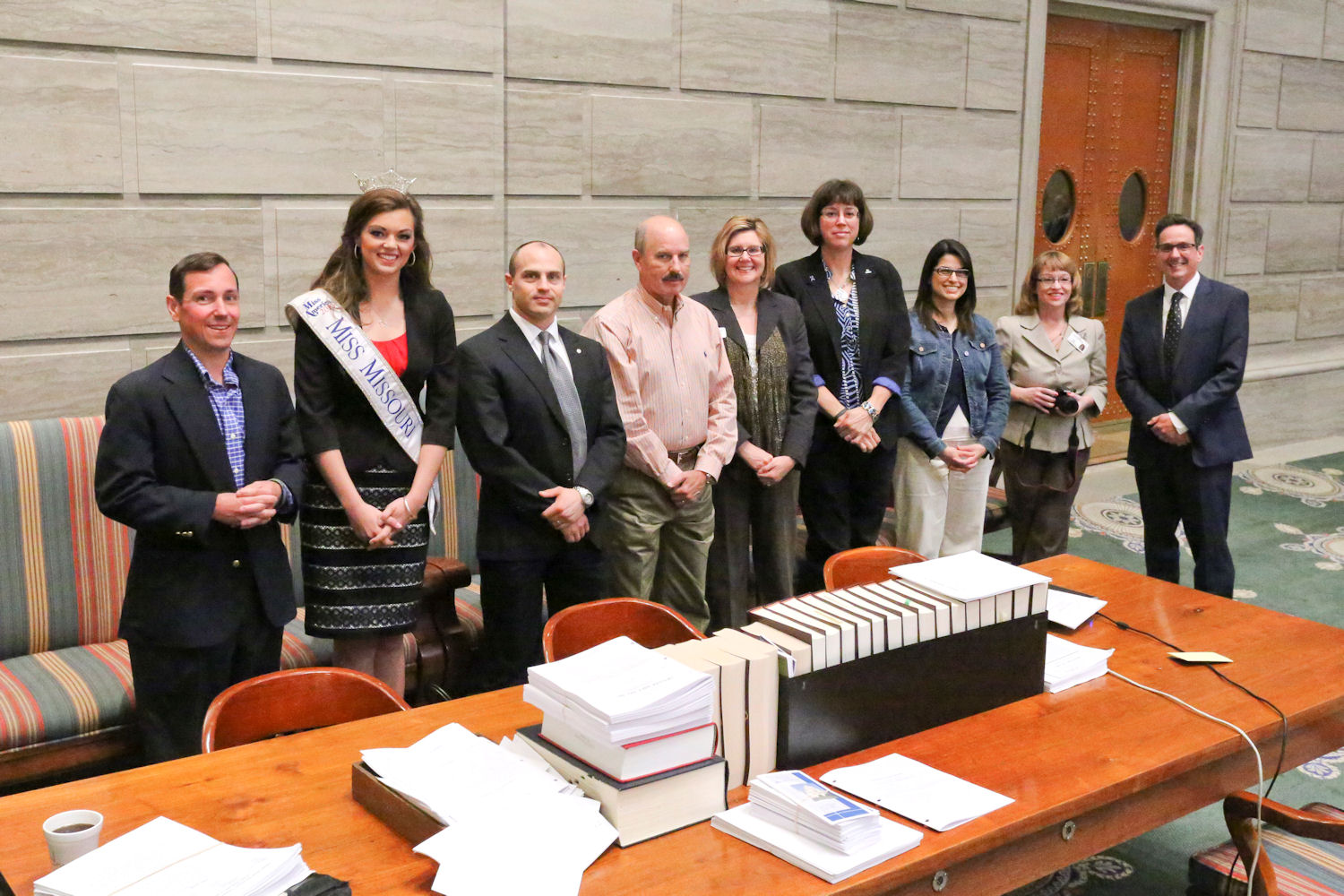 Senator Schaefer with Shelby Ringdahl, reigning Miss Missouri 2013, and Great Circle Columbia Advisory Council Members Randy Boehm, Ryan Bross, Jay MacLellan, Mark Schlemper and Great Circle Columbia Staff Becca Nowlin, Marissa Peterson and Susan Reeves on their visit to the Capitol.