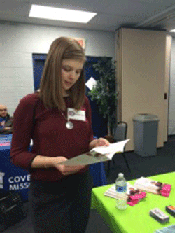 Bre Bambrick working at the January 31st Healthcare Enrollment Event |