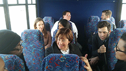 Sen. Jill Schupp on the bus with students from Washington University |