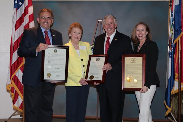Presenting Senate Resolutions to Nell Allgood from Kennett, Barbara J. Haubold, RN from Bertrand, Suelllen Fenton from Charleston and Carl Heuiser from Poplar Bluff for the Lt.Governor’s Senior Service Award ceremony, which recognizes citizens nominated by community leaders for their volunteer work.