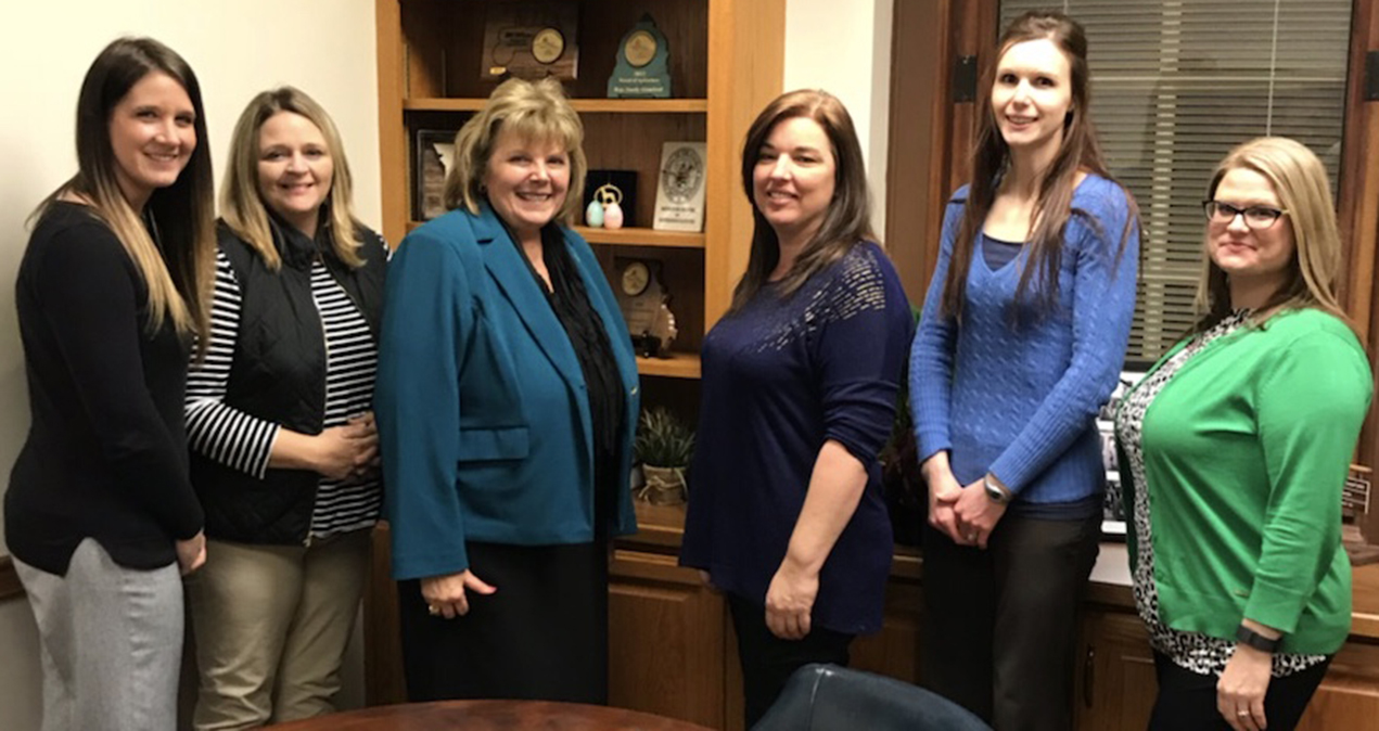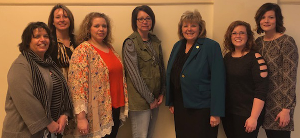 Cheryl Dawson-Spaulding (Greene), Stacy Satterfield (Dallas), Gary Letterman (Webster), Senator Crawford, Lynn Stowe (Laclede), Carol Poindexter (Polk) and Carole Wilkerson (Cedar)