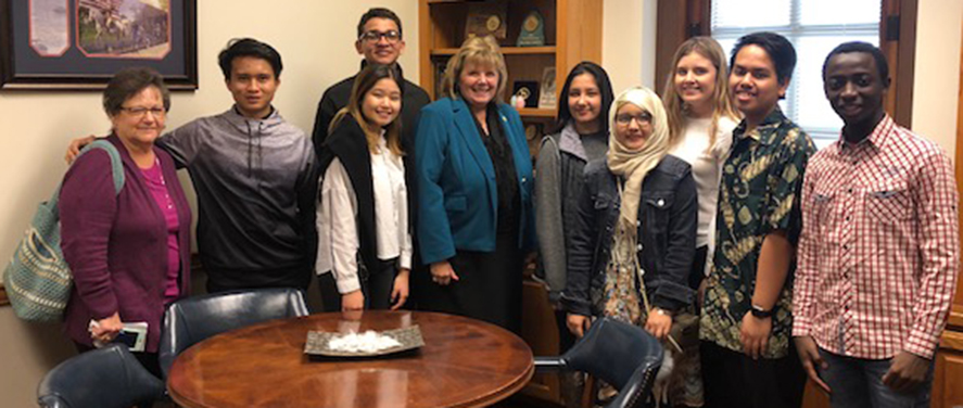 Dayana Kazakhstan (Conway High School), Yousef Egypt (Richland High School), Senator Crawford, Zulya Turkmenistan (Lebanon High School), Sadaf Bangladesh (Laquey High School), Maeva France (Lebanon High School), Edo Indonesia (Richland High School) and Sulku Sierra Leone (Laquey High School)